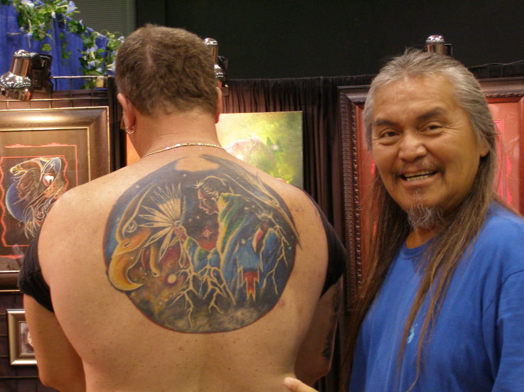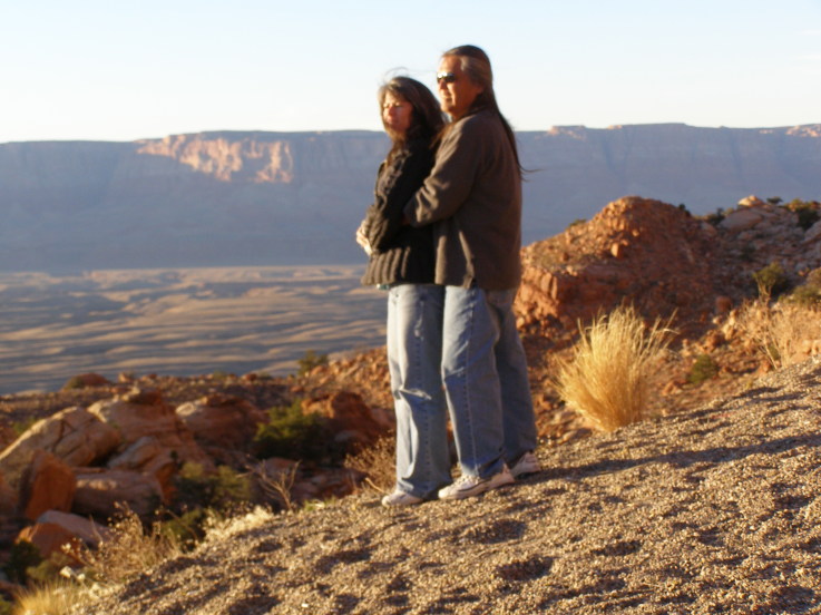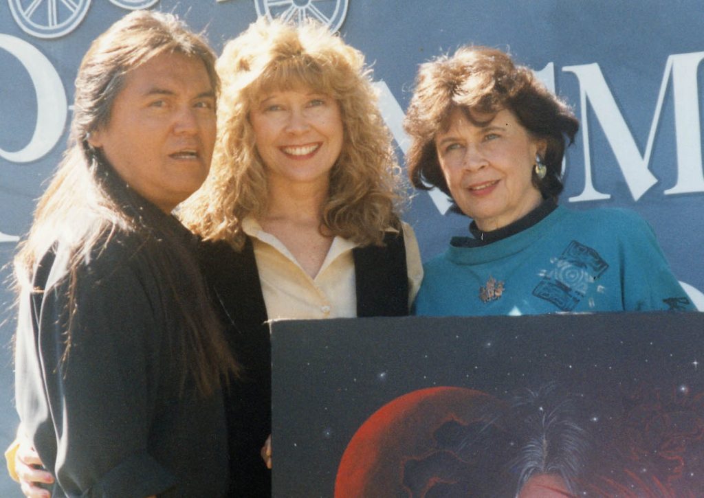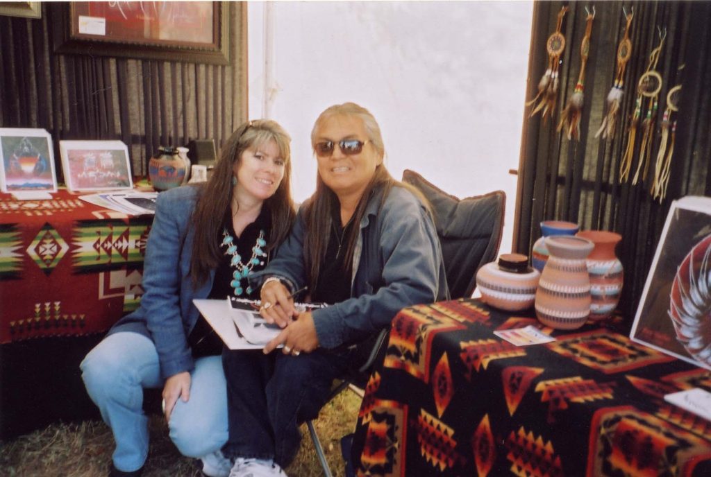 In February 2002, (the late) Rex had a heart attack at the Hollywood powwow. After a quad bypass and his battle to regain his strength, they worked together to restore his health, and he went on to live 12 more years. During those years, every day was a gift, forging and strengthening their bond of love together. Many more paintings were birthed during these years.