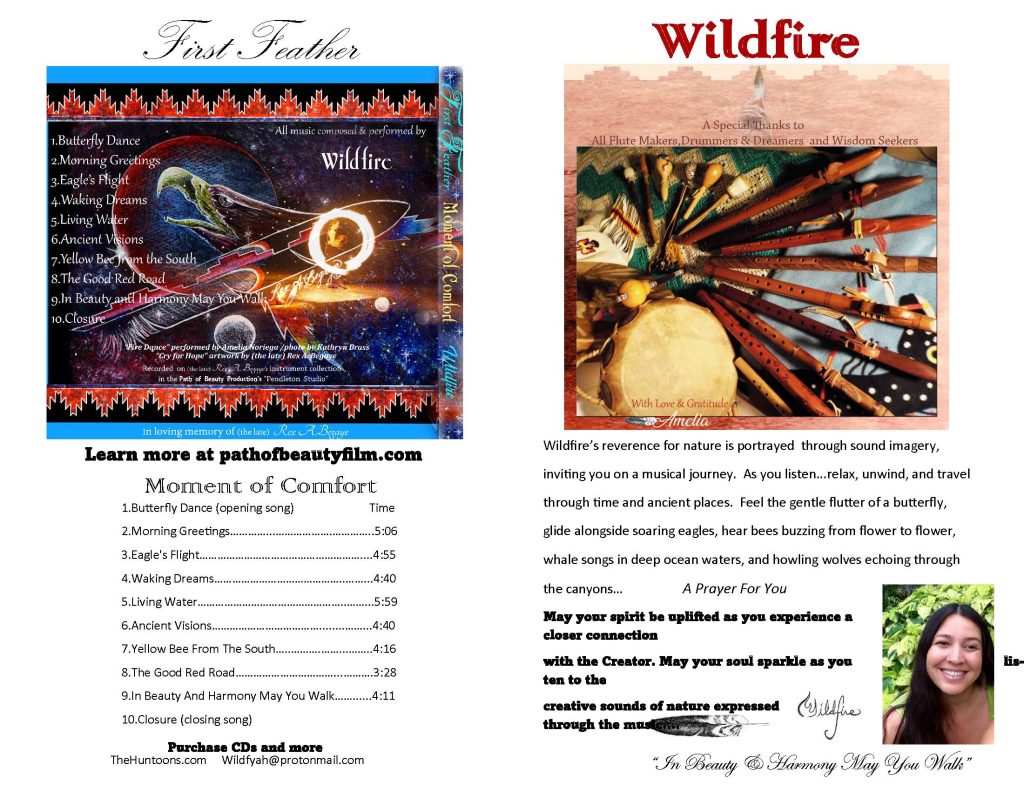 As a traditional Navajo artist, his work is an inspiration to the world, igniting Wildfire’s musical passion as a recording artist. She honors him by dedicating this CD in his memory, for the “Path off Beauty Legacy” he leaves behind.